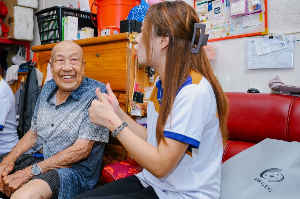 今日下午,多名銀娛團隊成員到達多個社區探訪「平安通」服務使用者及獨居長者家庭,與其親切交流及協助整理居家環境,並送上親手包裝、內含水果及日常生活用品的愛心包,藉此傳遞愛心與溫暖,氣氛融洽。另外,隨行的專業工程人員即場為相關家庭進行電器及電力等基本家居安全檢查及修繕,確保居家安全。