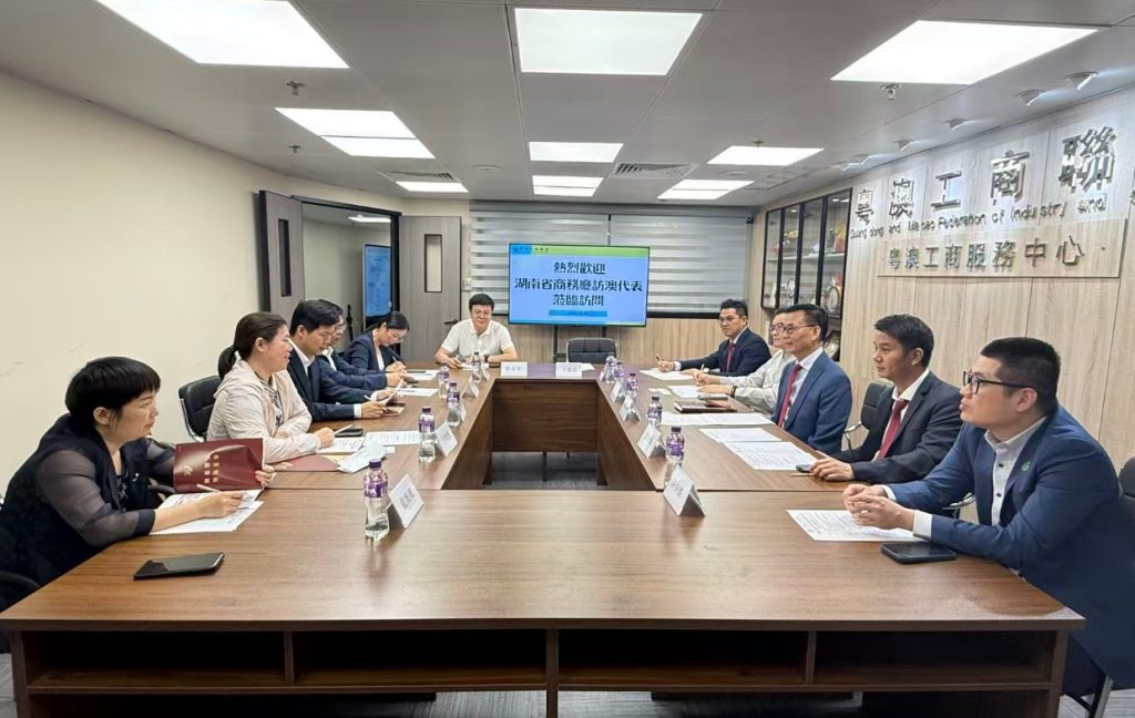 【環球新聞報訊】25日,湖南省委金融辦副主任羅棟帶領湖南省商務廳訪澳代表團一行到訪粵澳工商聯會。商會理事長黃仁民、副會長許華謙、大健康產業委員會主任劉帝恆、科技創新委員會主任蔡淵博、常務理事許少波等熱情接待。雙方圍繞湘澳兩地中醫藥產業發展現狀、兩地產業資源優勢深入交流,探討大健康產業協同發展。