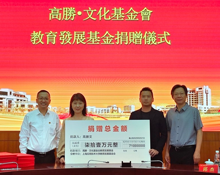 【環球新聞報訊】日前,適逢上海應用技術大學建校71周年,高勝•文化基金會創辦人高勝文博士再次捐贈澳門幣31萬元教育發展基金予上海應用技術大學,至今累計向該校捐贈澳門幣71萬元,藉此捐資助學活動鼓勵師生積極向上,助力國家教育事業發展,以實際行動踐行愛國愛澳。