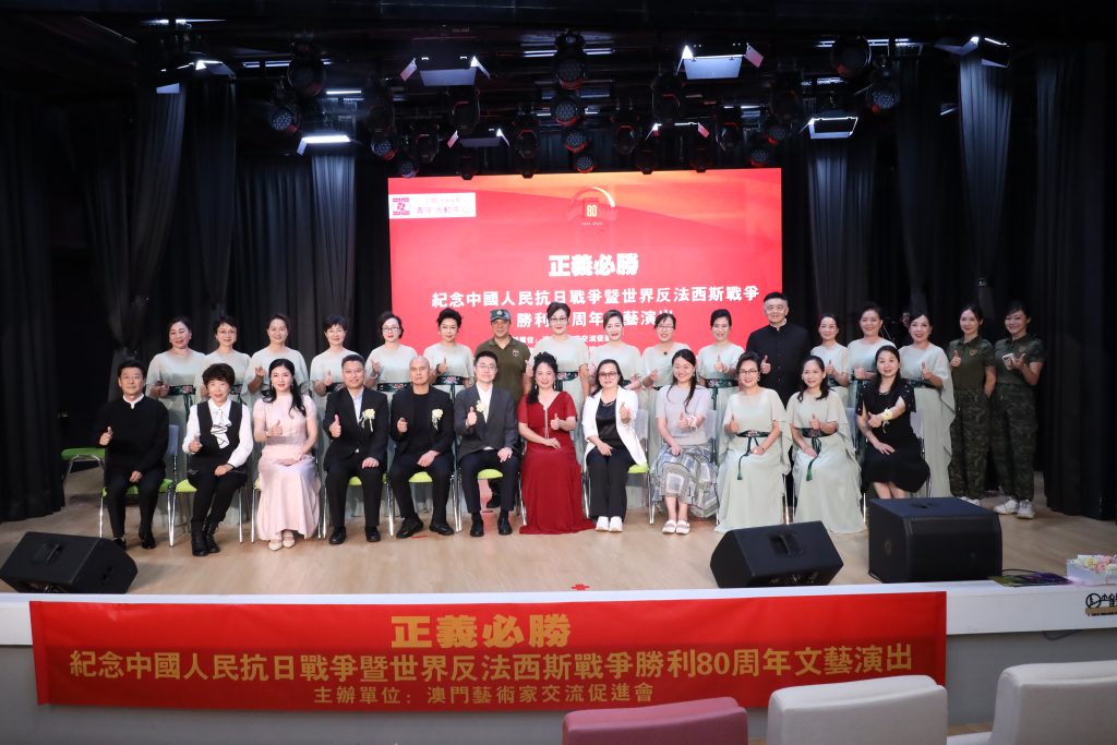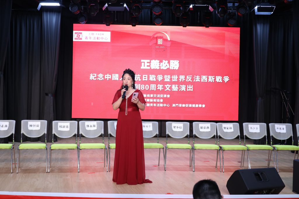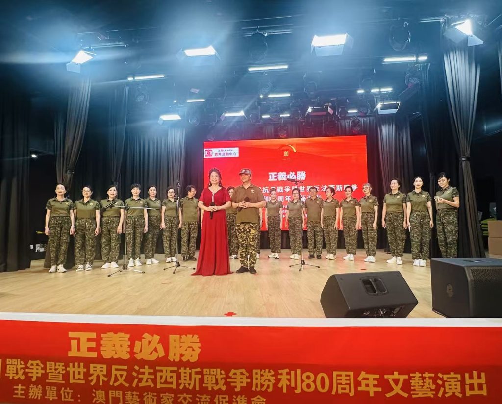 【環球新聞報訊】2025年9月29日,由澳門藝術家交流促進會主辦,珠海聲樂藝術協會協辦,澳門工聯青年活動中心及澳門音樂促進健康學會支持的「紀念抗日戰爭勝利80周年文藝滙演」假澳門工聯青年活動中心舉行。本次滙演旨在追憶歷史、緬懷先烈,弘揚愛國精神,傳承民族記憶,促進文化交流。
