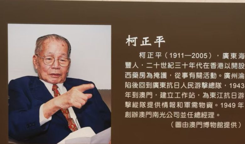 柯正平早年投身革命,1927年加入工农革命军,参与海陆丰农民运动。1929年赴香港从事地下工作,1936年加入中国共产党,成为澳门共产党组织机构的创建人之一 。抗日战争期间,他在香港、澳门组织抗日救亡活动,为东江纵队提供物资和情报支持,并开辟了澳门至广州湾的地下交通线,护送文化界人士如夏衍、金山等逃离日寇魔爪。解放战争时期,他奉命创办南光贸易公司(南光集团前身),在帝国主义封锁下承担起战略物资转运任务,为解放海南岛、支援抗美援朝提供了关键保障 。