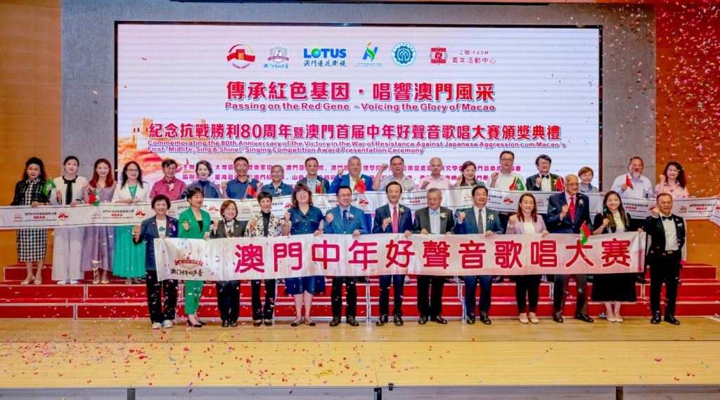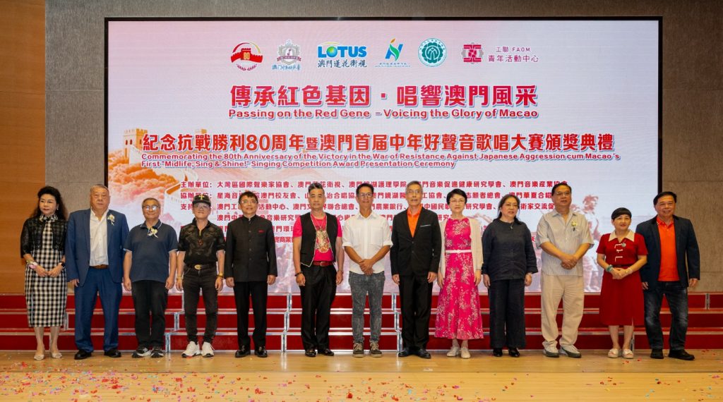 【環球新聞報訊】為隆重紀念中國人民抗日戰爭暨世界反法西斯戰爭勝利80周年,由大灣區國際聲樂家協會、澳門蓮花衛視、澳門鏡湖護理學院、澳門音樂促進健康研究學會、澳門音樂產業協會聯合主辦的“傳承紅色基因·唱響澳門風采——澳門紀念抗戰勝利80周年暨首屆中年好聲音歌唱大賽頒獎典禮”,日前在澳門鏡湖護理學院禮堂隆重舉行。活動以音樂為橋梁,融合歷史回響與時代歌聲,既緬懷崢嶸歲月,又展現澳門中年一代的精神風貌與文化自信。