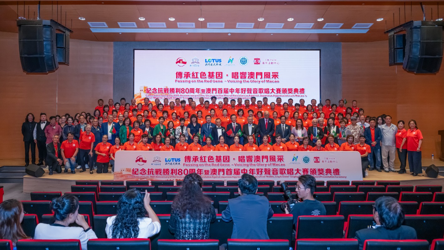 人民大會堂宴會廳華燈璀璨,洋溢著喜慶熱烈的節日氛圍。主席臺上方高懸著莊嚴的國徽,「1949-2025」大字年號在鮮艷紅旗映襯下格外醒目。