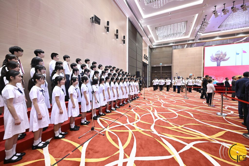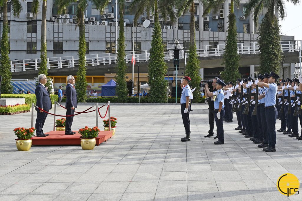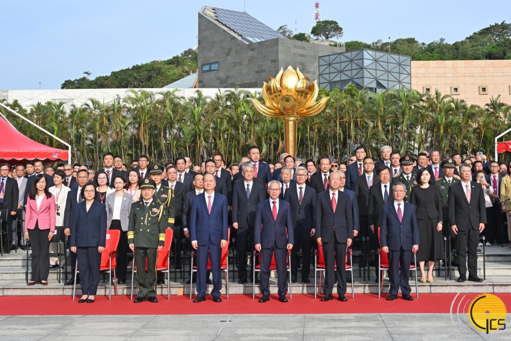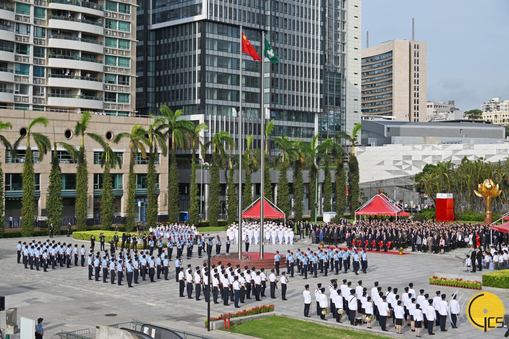 酒會前,特區政府早上8時在金蓮花廣場舉行隆重的國慶日升旗儀式,行政長官、中央人民政府駐澳機構負責人、澳門特區立法及司法機關負責人、行政會委員、立法會議員、特區政府官員、澳區人大代表、政協委員等約660人出席。