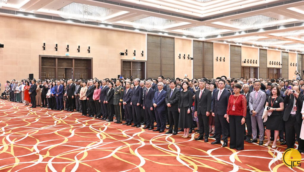 國慶酒會上午9時30分在中國與葡語國家商貿合作服務平台綜合體舉行。全國政協副主席何厚鏵、中央人民政府駐澳門特區聯絡辦公室主任鄭新聰、前任行政長官賀一誠、外交部駐澳門特派員公署特派員劉顯法、解放軍駐澳部隊政治委員林慶華、立法會主席高開賢、終審法院院長宋敏莉、行政會委員、立法會議員、特區政府官員、澳區人大代表、政協委員及各界人士等約1,320人出席。