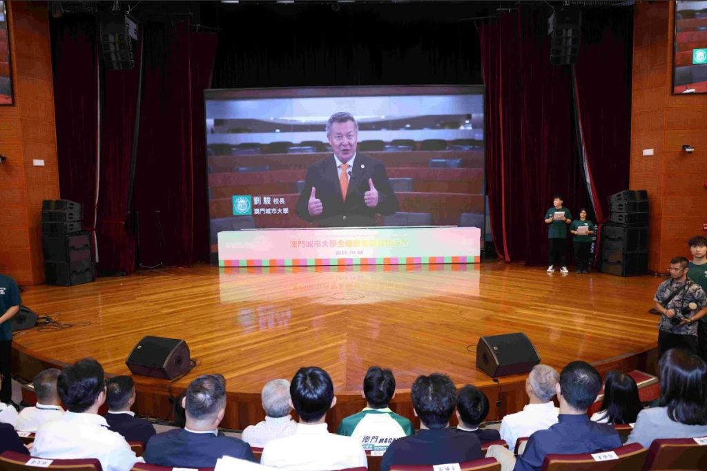 城大校長劉駿以視頻致辭勉勵學生志願者。他強調,每一位志願者都是盛會不可或缺的一員,其專業與熱情是賽事成功、增添光彩的關鍵。這不僅是服務奉獻,更是寶貴的人生歷練。劉校長鼓勵同學們,在此刻不僅代表城大,更代表澳門,向全國展現青年的責任感、專業素養與風貌,希望同學們把握此次展現自我、服務社會、實現成長的寶貴機會。