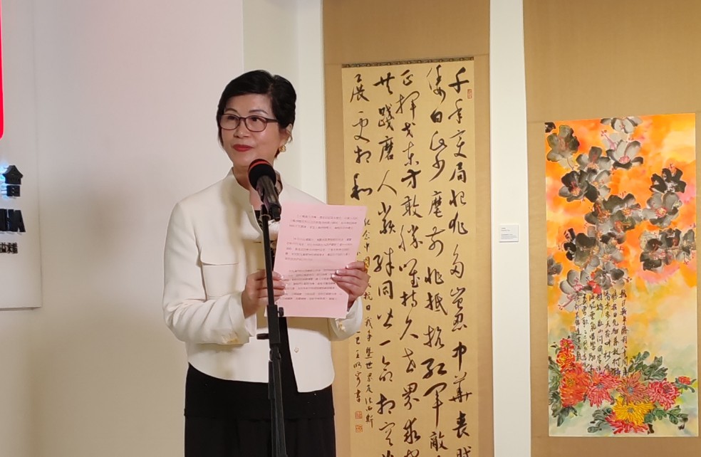 洪珊珊表示,作為澳門女性藝術工作者,協會成員始終與祖國同心同行。是次展覽,協會成員以筆墨為舟、刻刀為媒,將對歷史的深刻體悟、對和平的真摯禮讚融入中華優秀傳統文化創作,每一幅作品都承載著對先烈的緬懷與對祖國的深情。希望以藝術為橋樑,凝聚守護祖國繁榮、澳門穩定的力量,為世界和平與發展續寫新篇章。