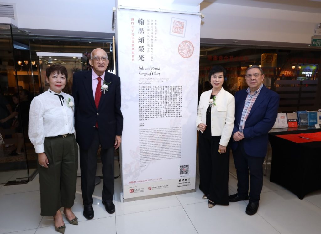【環球新聞報訊】 由官樂怡基金會和澳門女子書法畫篆刻家協會主辦的“翰墨頌榮光—紀念中國人民抗日戰爭暨世界反法西斯戰爭勝利80週年書畫篆刻作品展”於23日揭幕。該展覽以“銘記歷史、緬懷先烈、珍愛和平、開創未來”為題,展出近五十幅書法、繪畫及篆刻作品,內容涵蓋歷史場景、愛國詩詞、和平主題等創作,以藝術語言重溫崢嶸歲月,傳遞和平信念。