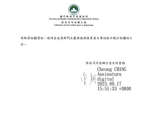 澳區政府保安司司長辦公室關於立法會馬耀鋒議員提出之書面質詢如下: