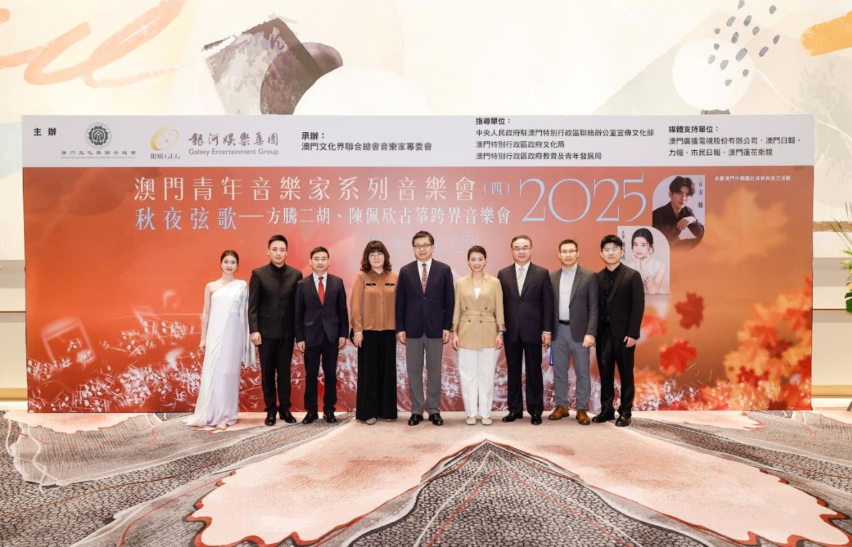 【環球新聞報訊】10月12日晚,由澳門文化界聯合總會與銀河娛樂集團聯合主辦,澳門文化界聯合總會音樂家專委會承辦的「澳門青年音樂家系列」《秋夜弦歌》音樂會,在銀河國際會議中心圓滿落幕。本地青年二胡演奏家方騰與古箏演奏家陳佩欣聯袂登台,以「傳統樂器,當代表達」為主題,帶領觀眾完成了一場穿越時空的音樂之旅。
