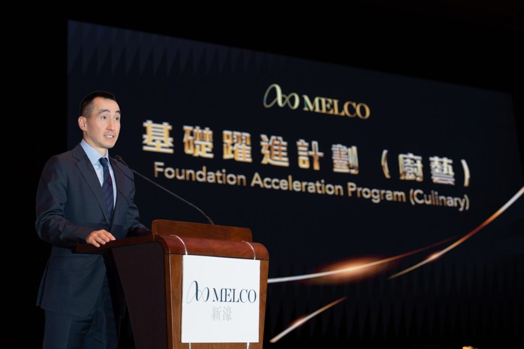 新濠主席兼行政總裁何猷龍先生表示:「很高興能夠與勞工事務局及澳門旅遊大學攜手合作,繼續推行獨有的『基礎躍進計劃(廚藝)』。作為新濠『全人發展』舉措之一,該計劃體現公司全力支持特區政府實現經濟多元化目標的承諾,致力培育本地廚藝人才,並為同事提供更多元化的事業發展機會。」