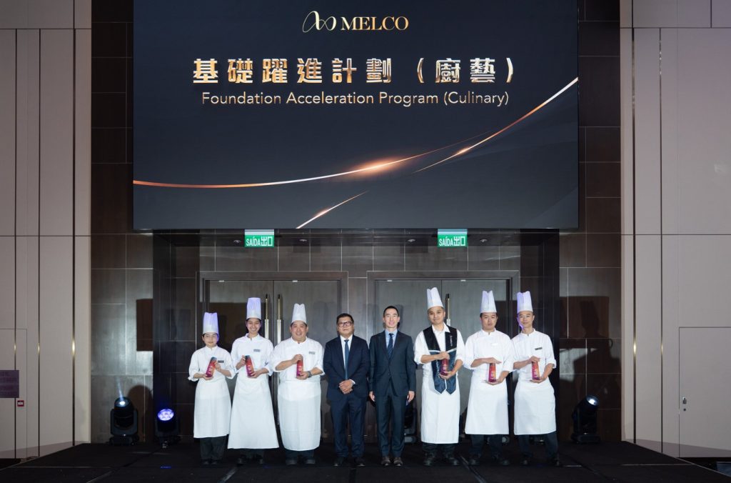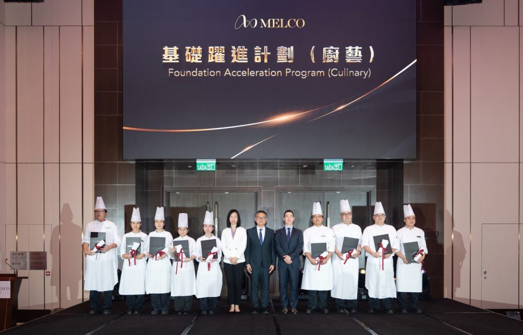 新濠一直致力透過提供多元化的學習機會,提升同事的職業技能及事業發展,藉以培育本地人才及推動「全人發展」。二零二一年,新濠在勞工事務局及澳門旅遊大學的鼎力支持下,攜手推出全澳首創的「基礎躍進計劃(廚藝)」。該計劃旨在發掘及培育本地廚藝人才,同時鞏固澳門作為聯合國教科文組織「創意美食之都」的地位。「基礎躍進計劃(廚藝)」透過全面的在職培訓、跨部門體驗,以及與特區政府及本地大學合辦的正式和非正式培訓,為參與者提供寶貴的技能發展機會,包括轉職、實戰經驗、管理培訓、導師指導及職業規劃。