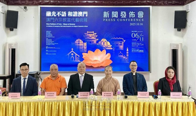 【環球新聞報訊】10月16日下午3時,主題為 「融光不語、和諧澳門」 的澳門六宗教(佛教、天主教、道教、基督教、巴哈伊教及伊斯蘭教)當代藝術展新聞發佈會在普濟禪院隆重召開。 作為本次展覽的發起方之一,澳門伊斯蘭文化交流促進會全程參與發佈會籌備工作,與其他五大宗教代表共同向社會各界介紹展覽籌備情況,傳遞伊斯蘭文化宣導的 “和平、友善、尊重” 理念,彰顯我會助力澳門多元文化交流的堅定決心。