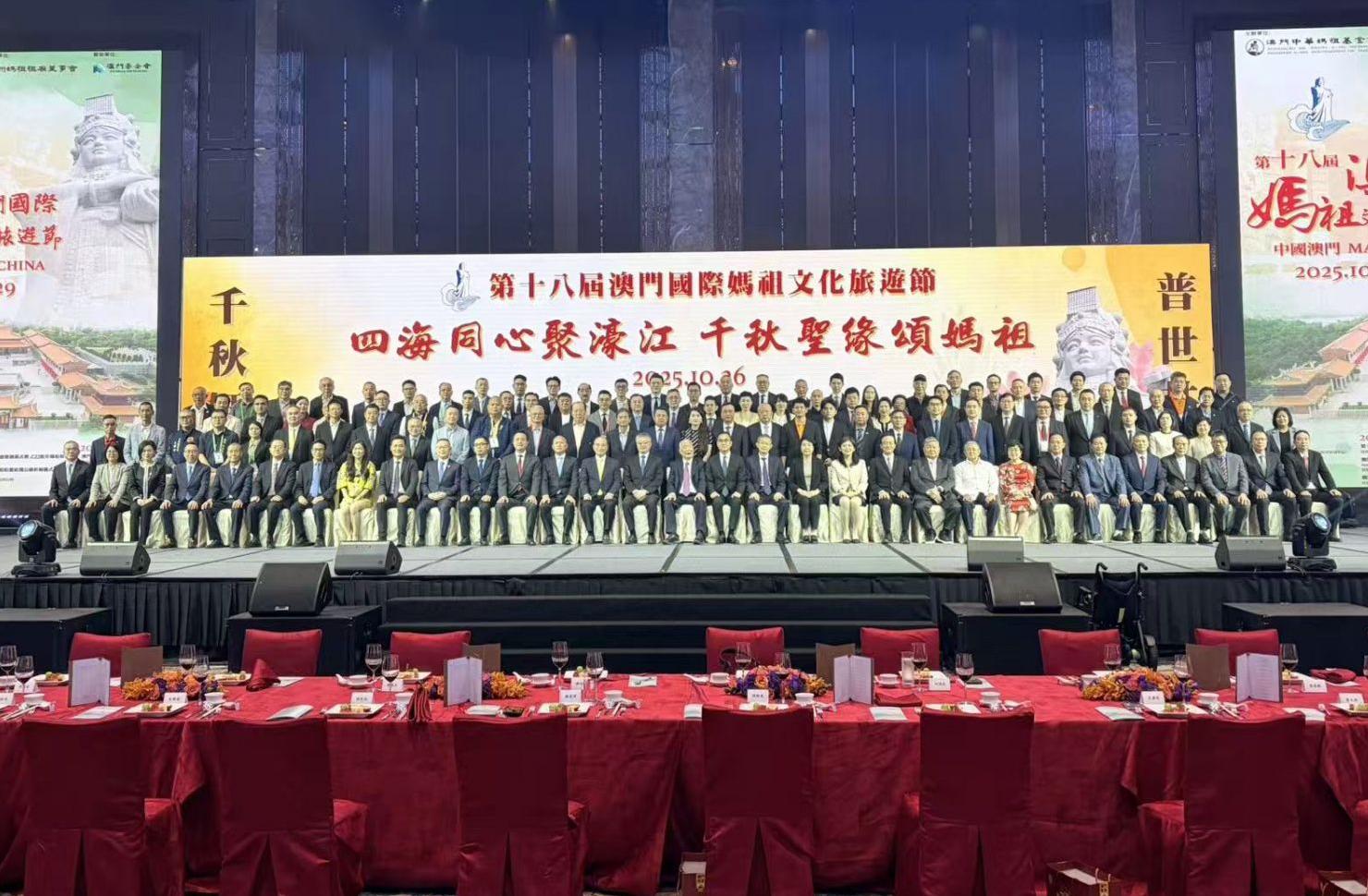 【環球新聞報訊】由澳門中華媽祖基金會主辦,湄洲媽祖祖廟董事會協辦,澳門基金會資助,以「千秋媽祖 普世共仰」為主題的「第十八屆澳門國際媽祖文化旅遊節」開幕式暨乙巳年媽祖祭典儀式,10月27日上午十時在澳門媽祖文化村舉行。行政長官岑浩輝,全國政協副主席何厚鏵,中聯辦主任鄭新聰,台灣中華傳統宗教總會榮譽理事長王金平,外交公署特派員劉顯法等嘉賓出席主禮,來自內地、台灣及「一帶一路」沿線國家的宮廟代表等海內外嘉賓逾千人共襄盛舉。