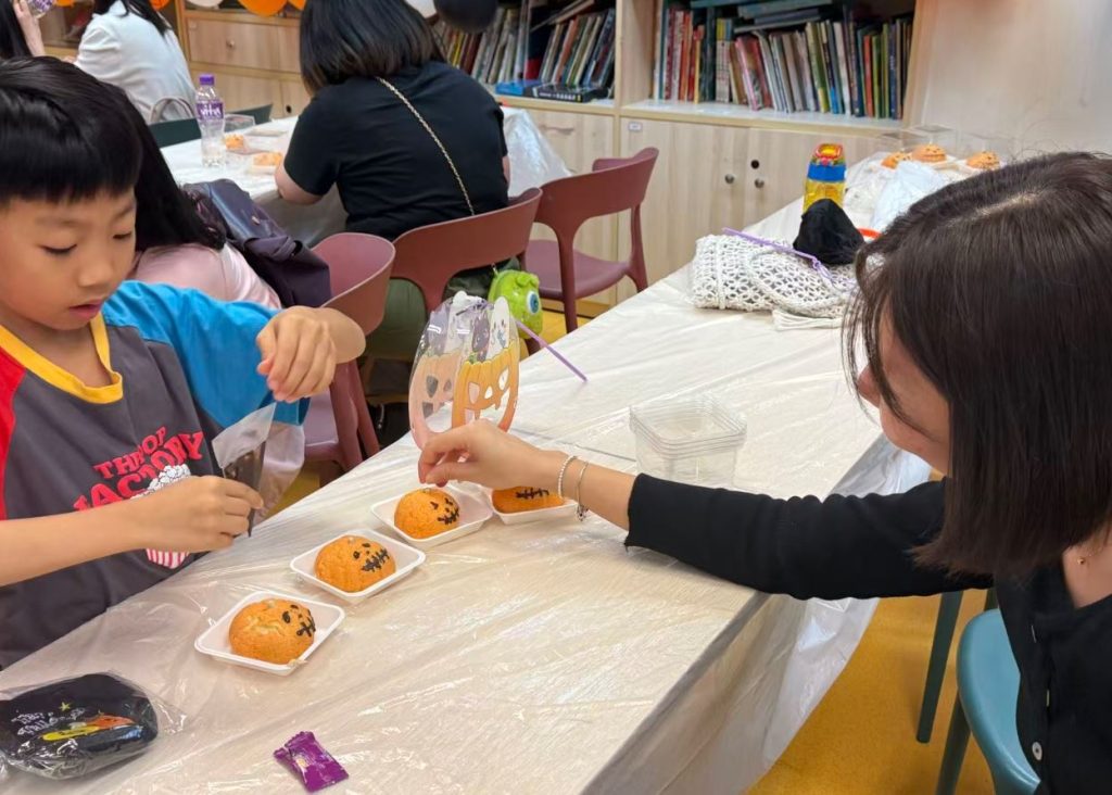 本次活動共分爲兩個工作坊,香薰工作坊首先由專業導師向親子介紹基礎知識以及製作技巧,後親子一起調配及攪拌材料,並挑選萬聖配飾放在成品上;南瓜菠蘿包工作坊則由親子一起揉搓麵團、塑造型,並畫上萬聖表情,期間社工與親子們一起玩遊戲及講解親職技巧。最後社工邀請所有親子一起扭蛋、分享糖果及共進美食。