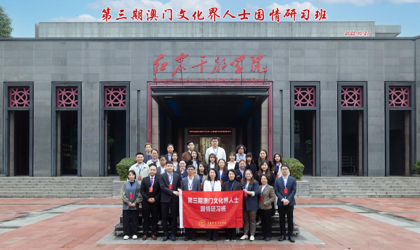 【環球新聞報訊】10月27日,“第三期澳門文化界人士國情研習班”在重慶紅岩幹部學院舉行開班儀式。中央人民政府駐澳門特別行政區聯絡辦公室宣傳文化部副部長白冰、澳門文化界聯合總會副理事長蔣瀟玲、重慶市人民政府港澳事務辦公室港澳處處長劉慧敏、重慶紅岩幹部學院執行副院長譚崢等嘉賓出席開班儀式,重慶紅岩幹部學院李芸倩主持開班儀式。
