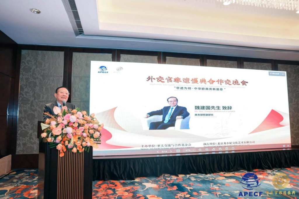 商務部原副部長、中國國際經濟交流中心資深專家諮詢委員會委員魏建國發表《非遺為橋,跨越山海:共譜中非歐商務新篇章》重要講話,以國家戰略視角解讀三方合作的緊密關聯,為活動奠定高規格、前瞻性的發展基調,引發全場共鳴。