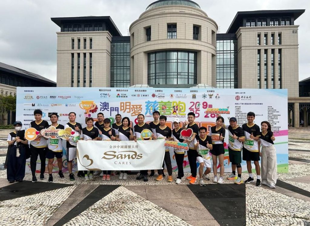 金沙中國社會事務總監林妤庭於9月28日在澳門大學舉行的支票捐贈儀式上,將澳門幣10萬元的善款交予澳門明愛總幹事潘志明,以支持「2025澳門明愛慈善跑」。金沙中國關懷大使亦出席了支票捐贈儀式,並一同參與5公里健康跑,藉此推廣健康生活、促進社區共融及家庭和諧。