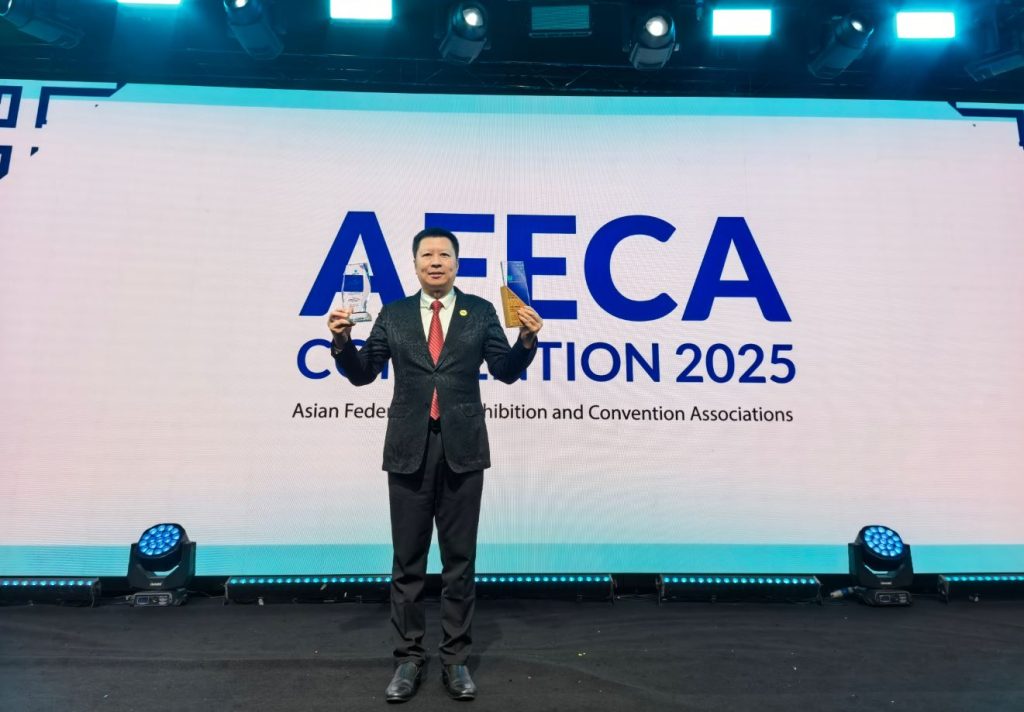 「AFECA年度獎項」覆蓋會議業、展覽業、展覽承建、展品貨運、場館管理五大核心領域,經嚴格提名篩選與專業評審,何海明會長與印度尼西亞會議與大會協會主席Dr Iqbal共同摘得「會議業傑出領袖」殊榮。