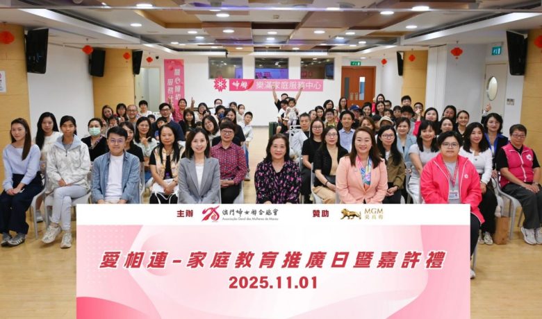 【環球新聞報訊】由婦聯總會與美高梅合辦的“愛‧相連”家庭教育合作計劃,日前在婦聯樂滿家庭服務中心舉行“愛‧相連”家庭教育推廣日暨嘉許禮。社會工作局社區協作處處長林佩嫦、美高梅助理人力資源事務總監劉芍芝、婦聯總會副會長黃潔貞等出席活動。
