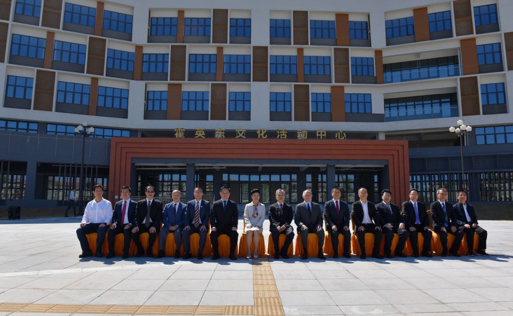 廣東省政協副主席張嘉極,澳門霍英東基金會主席、霍英東集團行政總裁、學校董事會副董事長霍震寰先生,學校黨委書記翟雪梅,黨委副書記、校長廖明,廣東省委統戰部副部長黃育振,廣東省體育局副局長朱紅偉,廣東省代建項目管理局局長孫淵、中央駐澳辦廣東聯絡部二級巡視員李國文、廣東省委統戰部聯絡處處長何啟歡、澳門霍英東基金會總幹事史濠、項目施工單位 —— 廣州機施建設集團有限公司總經理張佔峰,設計單位 —— 廣東省建築設計研究院集團股份有限公司粵建一院院長方虎生,學校黨委常委、副校長田允波、林俊睦、张文峰出席活動。校友代表、全體中層正職和師生代表參加活動。廖明主持霍英東文化體育中心捐贈儀式和揭牌活動。张文峰主持霍英東文化活動中心揭牌活動。