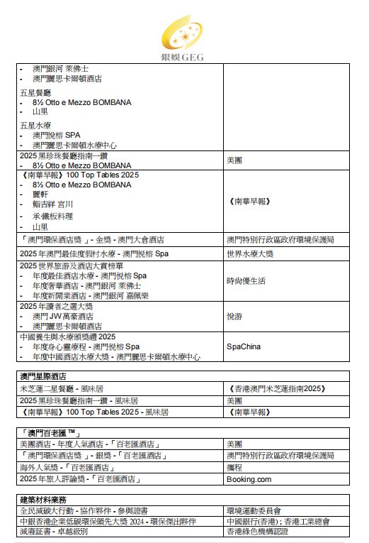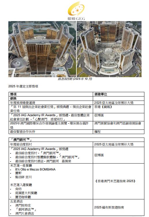 銀娛宣佈華都娛樂場已於 2025 年 10 月 31 日終止營運。銀娛一直積極支持澳門特區政府保障本地居民優先就業的方針,團隊成員除了可以保留原有職位,還有機會按自身意願探索一系列的職涯路徑,同時亦獲得過渡到新工作環境的支持。