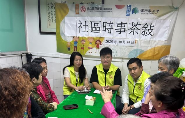 【環球新聞報訊】為深入了解三盞燈與附近一帶社區設施及民生情況,以及居民對各項政策措施的期望與訴求,民眾建澳聯盟副理事長莫超群、社區幹事雷路德及老仲明,於十月二十八日下午三時,在該會轄下三盞燈服務處舉辦民眾座談會,並聯同居民走訪社區,了解該區情況並收集居民、商戶的意見和建議。