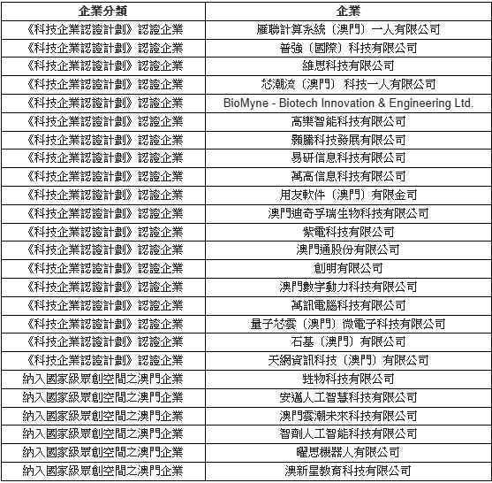 參與本次交流團的本澳企業包括: