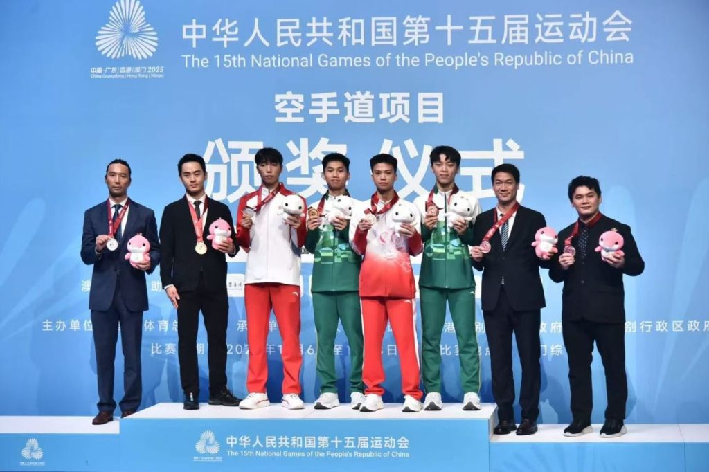 【環球新聞報訊】第十五屆全國運動會群眾比賽空手道男子個人67公斤級決賽在澳門舉行。澳門代表隊隊員、澳門大學學生容君灝憑藉沉穩的戰術及出色的技術發揮,奪得賽事金牌。這是澳大學生於今屆全運會奪得的第二面金牌。