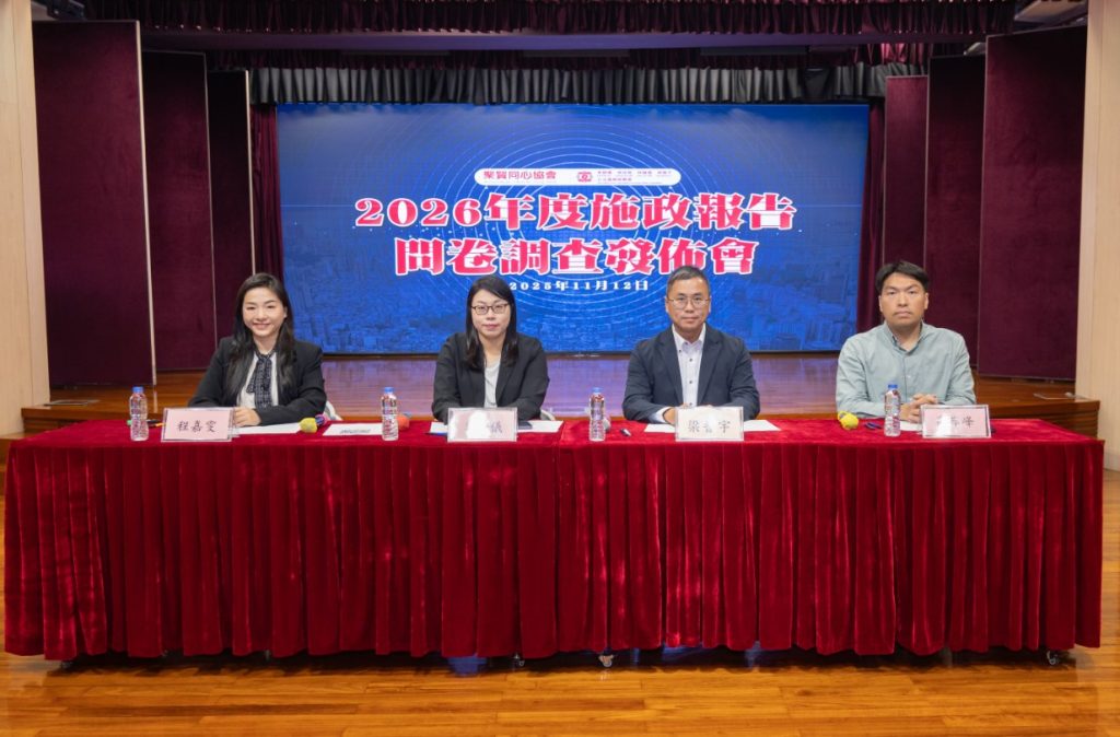 【環球新聞報訊】行政長官即將發表2026年度施政報告,為深入了解居民關注焦點及政策期望,聚賢同心協會早前進行《2026年施政報告意見收集問卷調查》,並於今日舉行發佈會公佈結果。出席記者會的有副理事長李靜儀、高岸峰,以及理事程嘉雯,以及工聯副會長梁普宇。他們期望政府要穩定民生、控制物價、優化醫療系統;並通過強化養老與就業保障體系,以加強就業保障及休假休息權。