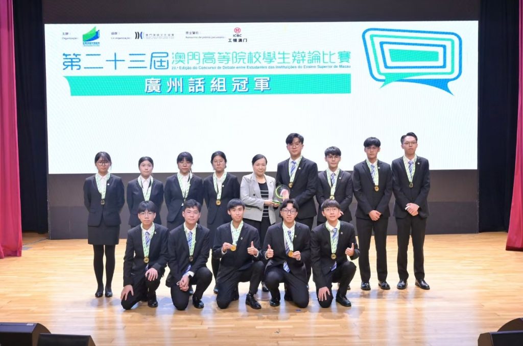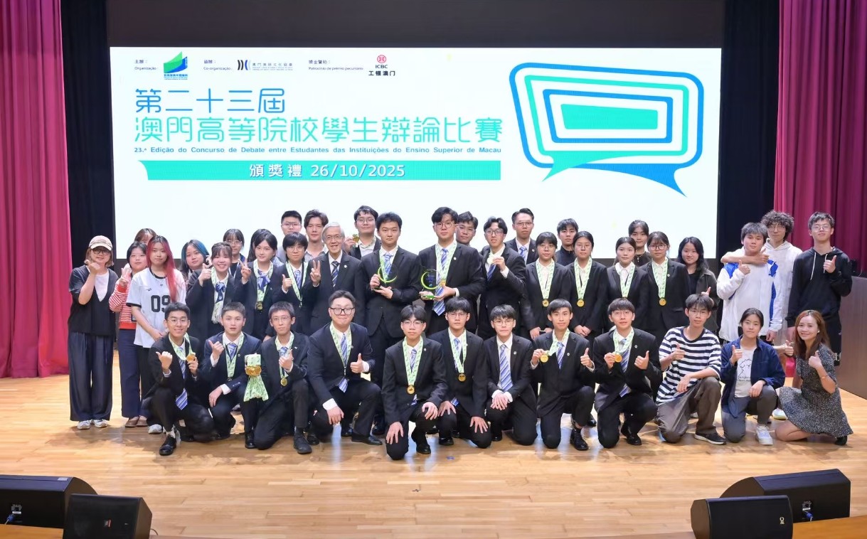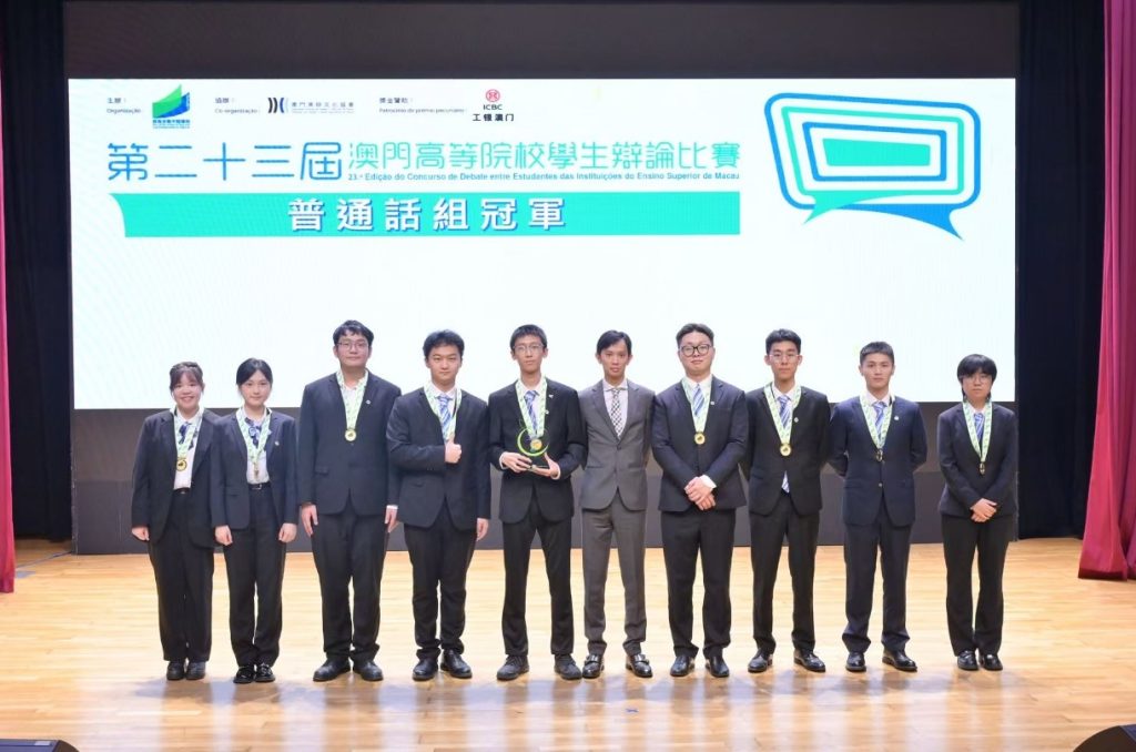 【環球新聞報訊】澳門大學普通話辯論隊及廣東話辯論隊於 “第二十三屆澳門高等院校學生辯論比賽”中,憑藉出色的思辨能力與團隊合作精神,雙雙奪得冠軍。澳大普辯隊在該項比賽中累計第12次奪冠;廣辯隊則累計第15次奪冠。