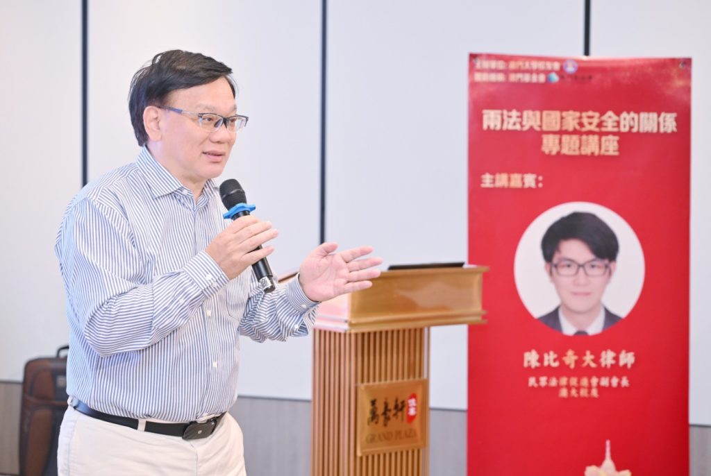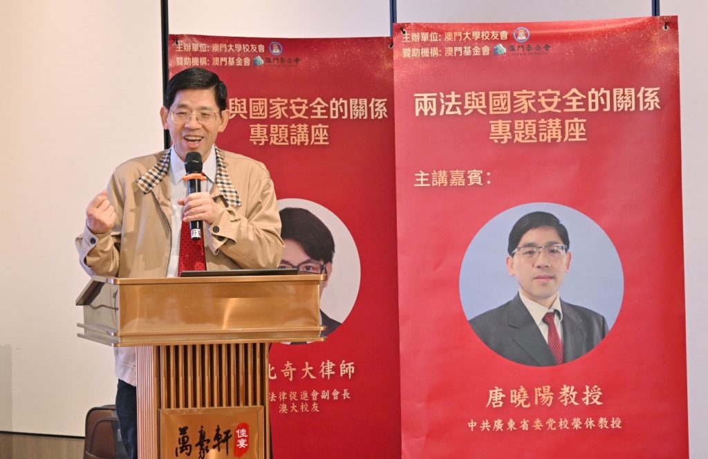 校友會理事長葛萬金致詞時表示,國家安全是重中之重,涉及民生、國防、經濟、科技發展、海洋、航空、太空及深海等各個領域,故此希望藉此座談會能為參加者分享主講嘉賓的經驗及意見,集思廣益,做好公民及澳門人應有的責任.
