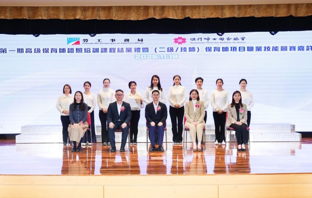 參與活動的獲嘉許者分別完成由社工局、勞工局及婦聯合辦的第五至八期初級育嬰員證照培訓課程;勞工局與婦聯合辦的第一期初級保育師證照培訓課程;婦聯主辦的婦聯托兒所中級育嬰員證照培訓課程和高級保育師證照培訓課程。另外,在十一月初舉行的“江門市第五屆職業技能大賽”中,本澳九位選手在(二級/技師)保育師項目全數通過競賽,其中六位選手包攬一等獎、二等獎及三等獎的優異成績,大會亦對得獎選手進行嘉許。