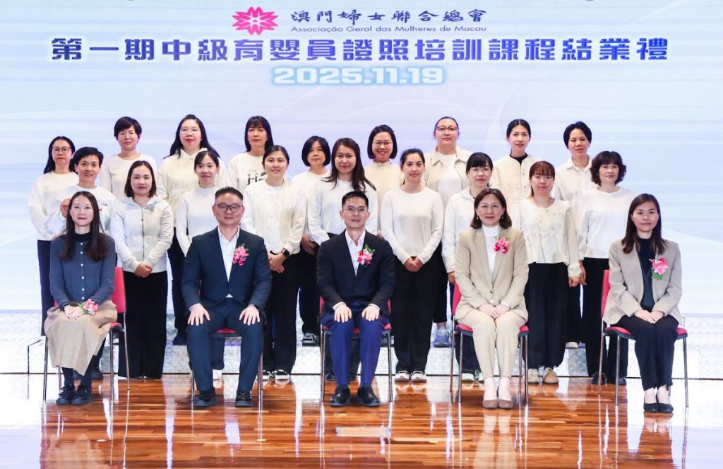 中聯辦社工部副部長姜正宇,勞工局局長陳元童,社工局兒童及青少年服務處代處長黃燕玲,婦聯理事長袁小菱、副理事長兼社會服務部行政主管何嘉欣出席並向學員頒發證書。