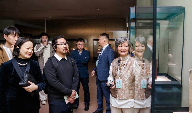 其後,與會嘉賓共同為展覽啟幕。寧波市文聯主席、黨組書記楊勁對展覽各板塊內容進行闡述推介,分享越窯青瓷的千年文脈。藝術家施珍則為嘉賓與觀眾進行了導覽,系統呈現了從唐五代祕色瓷技藝到當代青瓷彩繪創新的藝術流變。