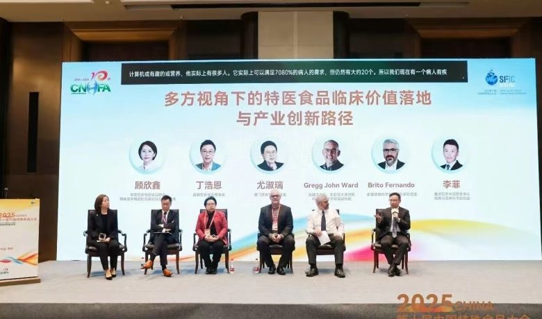 圓桌討論環節,由中國營養保健食品協會特殊醫學用途配方食品分會輪值主席顧欣鑫主持,與香港營養學會理事長丁浩恩、澳門營養學會理事長尤淑瑞、達能大中華、北亞及大洋洲區科學營養數位健康副總裁Gregg John Ward、雀巢健康科學全球法規事務總監Brito Fernando、雅培營養中國研發中心臨床與營養科學副總監李菲圍繞“多方視角下的特醫食品臨床價值落地與產業創新路徑”展開分享和探討,通過政策解讀、技術創新、臨床對接和資本賦能,為中國特醫食品產業邁向全球化、科學化、創新化注入了新動能。