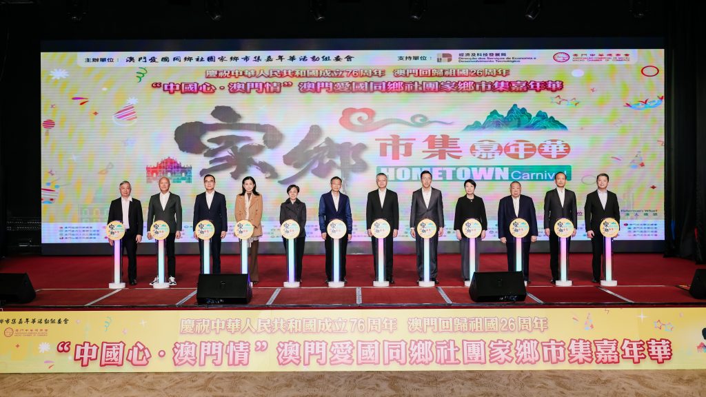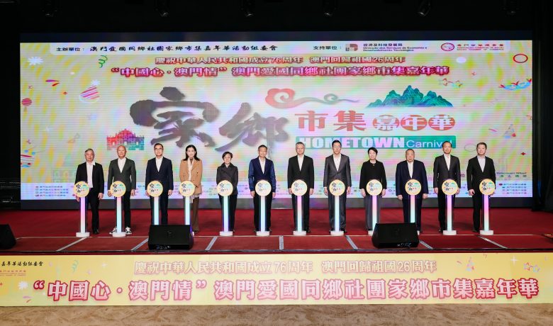 【環球新聞報訊】由澳門經濟及科技發展局、澳門中華總商會支持,56家愛國同鄉社團聯合主辦的「中國心 • 澳門情」慶祝中華人民共和國成立76周年、澳門回歸祖國26周年「家鄉市集」嘉年華於11月20日下午在漁人碼頭會議展覽中心舉行開幕儀式。並開展20日-23日一連四日活動。