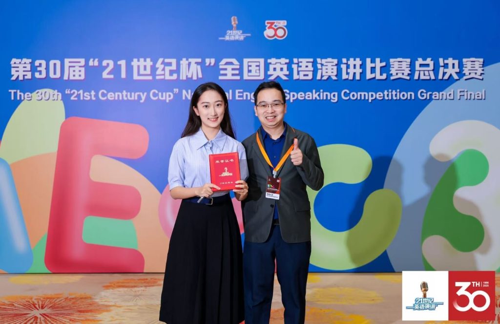 “21世紀杯”比賽流程嚴謹、主題鮮明,是全國最高級別的英語演講競賽。比賽歷經10個月的初賽、複賽和省賽,最終大學組300多名選手晉級全國總決賽。澳大兩位學生以流利的英語、創新的觀點和深刻的思考,贏得了評委、其他高校指導老師與觀眾的高度評價。盧藹琳和張珈歡分別獲得全國一等獎和二等獎。