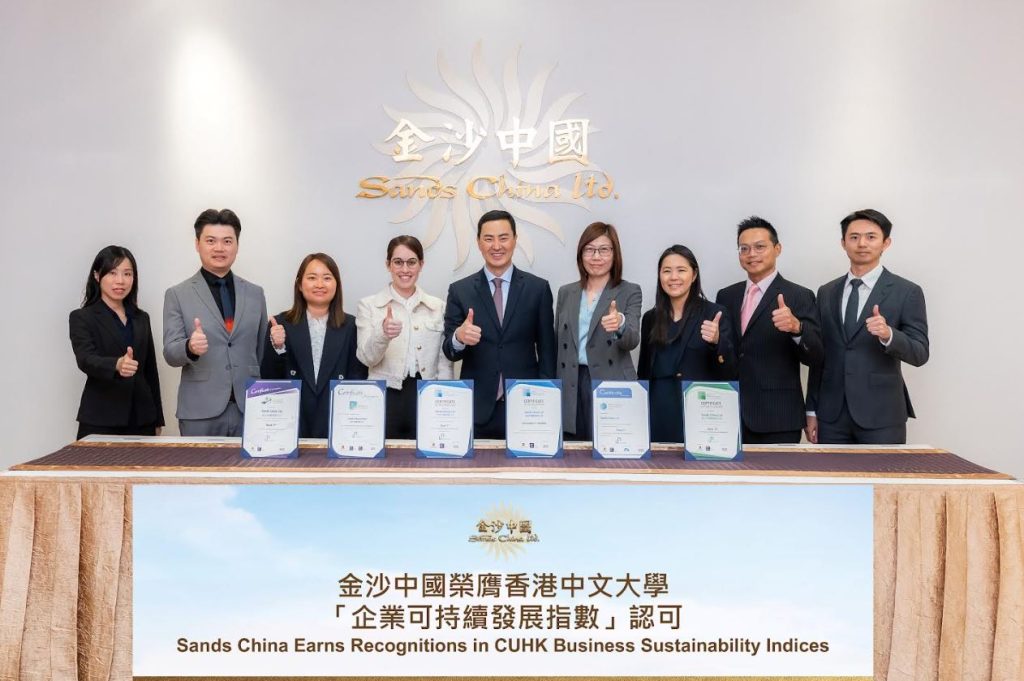 金沙中國於香港中文大學「企業可持續發展指數」中榮獲五項指數認可