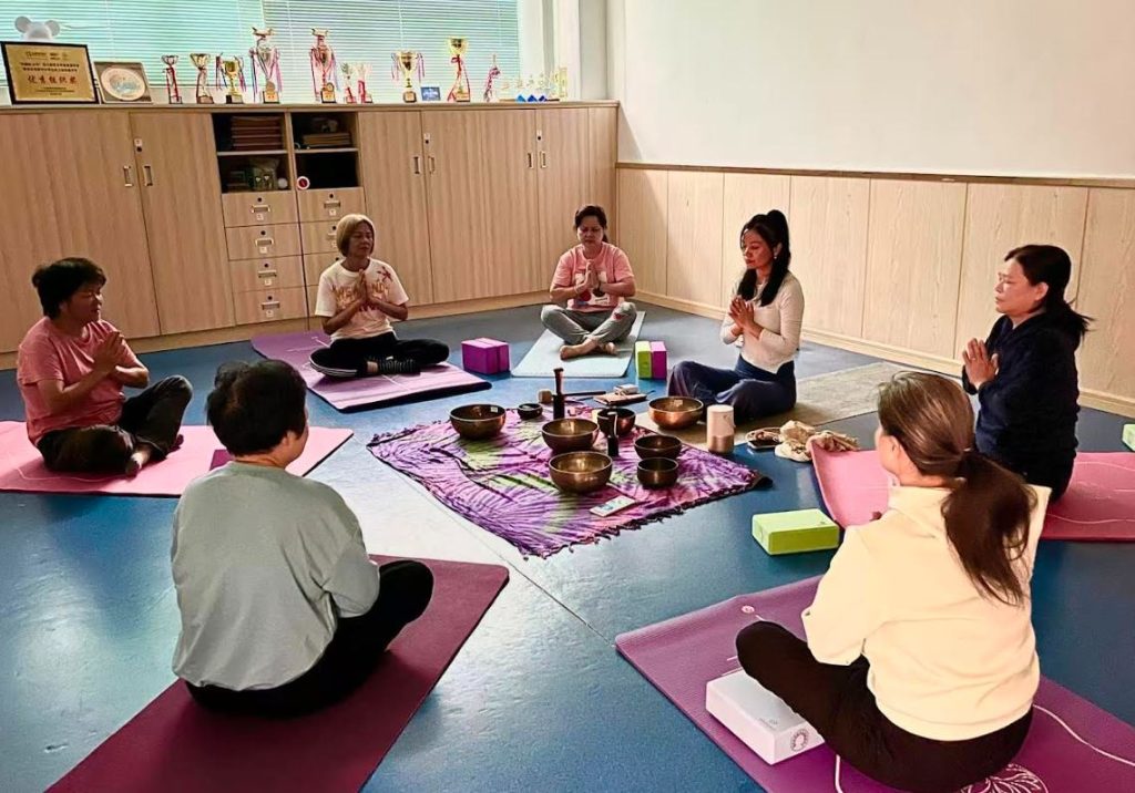 本次小組共分為四節,第一節小組是讓參加者製作艾草錘,社工現場講解艾草的功效(穩定情緒及緩解緊張感)與艾錘的製作技巧。第二節小組則是聲浴瑜伽體驗環節,由專業老師帶領參加者伴隨頌缽聲、雨聲等音效,舒展身體及放鬆心情。第三節小組是排排舞體驗,由專業老師教導婦女跳一些簡單的舞蹈,帶走積攢的壓力與疲憊。第四節作為小組的收官環節,社工與婦女們圍坐在一起,一邊品嘗佳餚,一邊分享參與四節小組的心得體會。