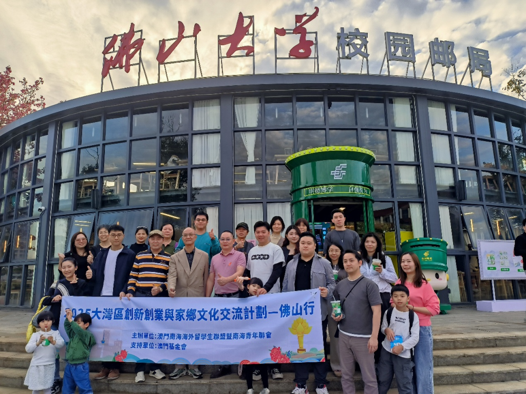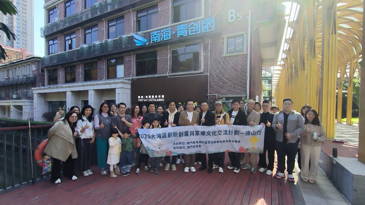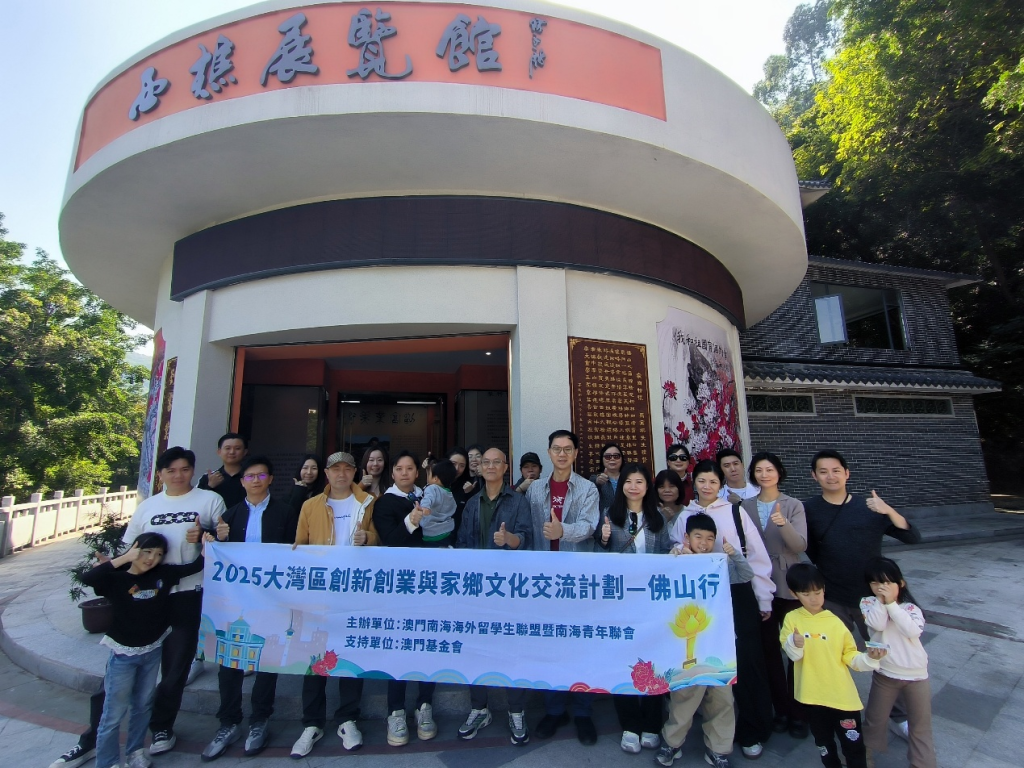 【環球新聞報訊】澳門南海海外留學生聯盟暨南海青年聯會(以下簡稱「南青會」)十一月廿二至廿三日組織三十名會員開展「2025大灣區創新創業與家鄉文化交流計劃–佛山行」,活動聚焦「創新創業、民生合作、家鄉文化、愛國教育」四大主題,深化兩地互動,凝聚發展動力,並提升對家鄉文化及國家建設的認同感。交流團由澳門南海沙頭同鄉會副會長崔家鴻、澳門南海大瀝同鄉聯誼會副理事長唐紹燊任名譽團長,南青會會長李建煒任團長,南青會常務副會長馮文滔、財務長李啟昇任副團長。活動獲澳門基金會贊助部分經費。