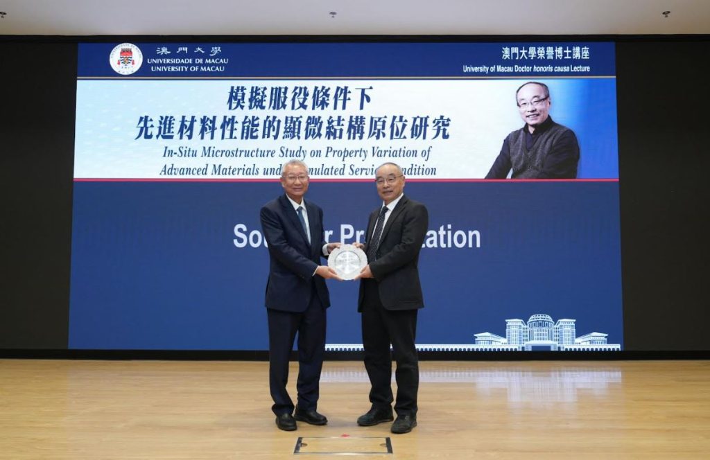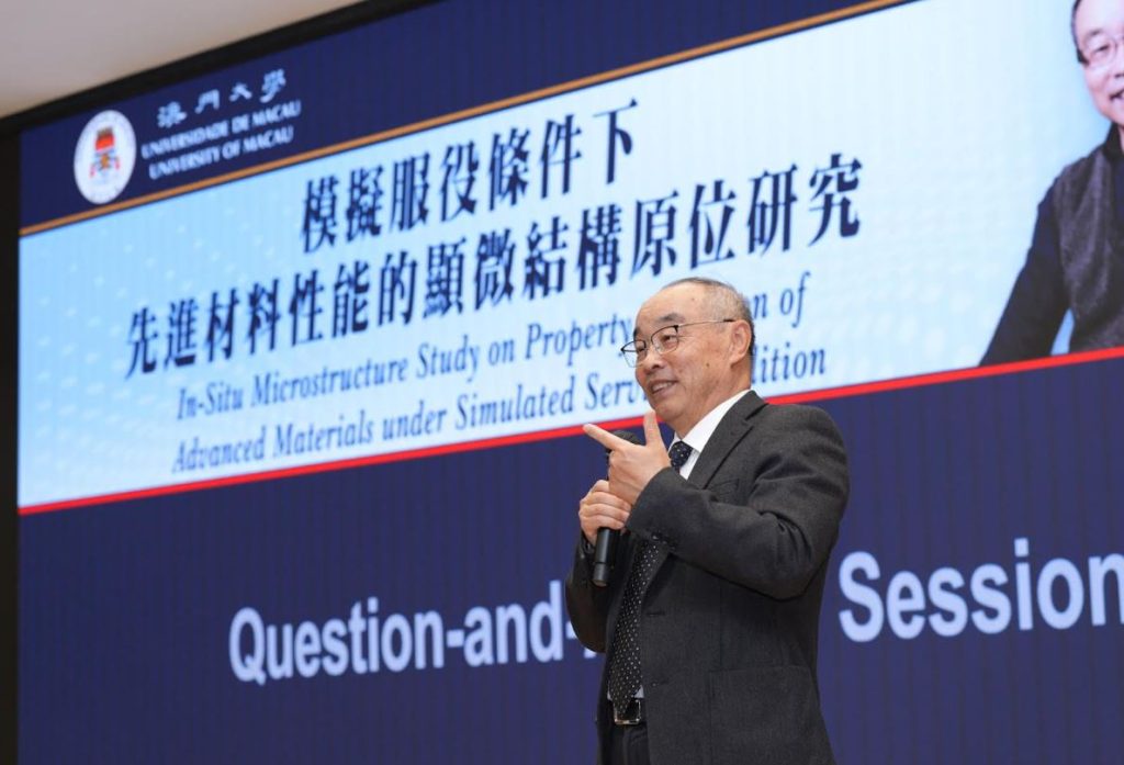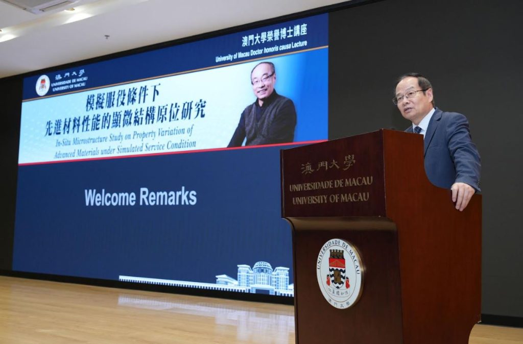 【環球新聞報訊】澳門大學於11月28日舉辦“澳門大學榮譽博士講座”,由澳大榮譽理學博士、材料科學晶體結構領域權威學者張澤以“模擬服役條件下先進材料性能的顯微結構原位研究”為題發表演說,分享其在準晶體及其他功能納米材料獨特顯微結構的研究成果,並展望其前景及應用。