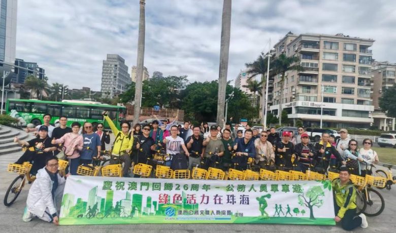 【環球新聞報訊】為慶祝慶賀“雙慶”,澳門公務文職人員協會日前在珠海美麗的情侶路舉辦了“澳門公務人員珠海單車遊——綠色活力在珠海”活動。此次活動吸引了大批會員攜家屬踴躍參與,大家在騎行中共享歡樂時光,進一步增進了彼此間的感情、友誼與合作。