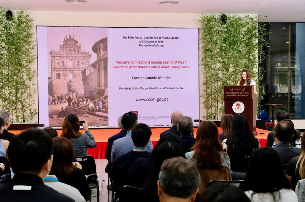 年會邀請了葡萄牙澳門科學文化中心主席卡門•阿曼多•門德斯(Carmen Amado Mendes)以“澳門作為連接東西方的紐帶:澳門歷史城區在世界遺產的重要性”為題作主旨演講,闡明澳門遺產在促進跨文化對話和相互理解方面的深遠意義。她指出,自16世紀中葉開始,澳門即作為“第一且最持久的東西方文明相遇地”,成為連接葡萄牙、中國與日本之間貿易的理想樞紐,不僅塑造了澳門融合中西的建築風貌與城市肌理,也形成了學者所稱“文化親密性”與“不對稱但相互塑造”的社會關係。建基於中葡兩國共同努力,這種歷史性的融合最終建立出澳門歷史城區的世界遺產地位,結合今年澳門獲得“東亞文化之都”的榮譽,將澳門獨特的跨文化身份轉化為重要的城市品牌與軟實力。她又指,澳門的獨特性建基於官方與民間機構共同努力維繫,從葡萄牙澳門科學文化中心、澳門國際研究所,到澳門大學、澳門理工大學等學術機構,它們在葡萄牙語推廣、學術研究、檔案保存、文化交流等方面扮演了至關重要的角色。門德斯期待澳門學者能夠與相同學術領域的葡萄牙研究人員深度交流。