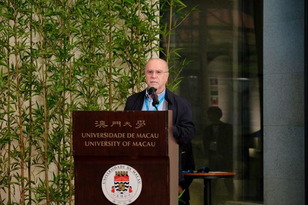 澳大副校長馬許願(Rui Martins)致辭時介紹了澳大在文化、歷史研究及國際合作方面的工作與規劃。他指出,在文化、歷史研究方面,澳大《澳門專題辭典》的出版、1491年版歐幾里得《幾何原本》搖籃本的收藏,以及持續進行果阿與澳門檔案中的澳門歷史文獻整理,均充分體現澳大在文史研究的成果。深化國際合作方面,澳大與葡萄牙澳門科學文化中心持續進行聯合出版,2022年與25個中國及葡語國家院校建立海洋研究聯盟,2025年成立了澳大區域海洋研究中心,2026年將舉辦葡萄牙語大學聯會年會及漢語和葡語國際論壇,均體現出澳大在國際合作上的成果。