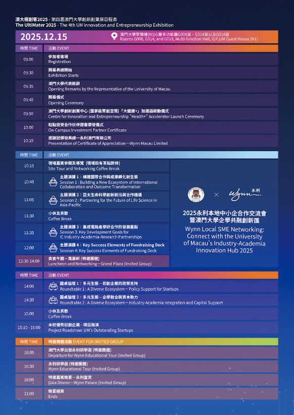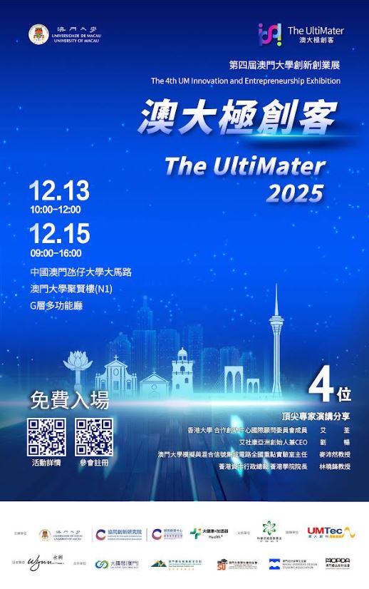 【環球新聞報訊】為促進創新成果轉化,助力初創企業脫穎而出,澳門大學將於12月15日舉辦“澳大極創客—第四屆澳門大學創新創業展”,以“企學共融,共築多元新生態”為主題,匯聚過百間澳門中小企參與,當中包括澳大孵化的初創公司。歡迎有興趣人士參加。