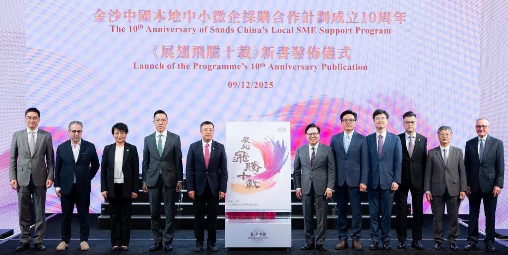 【環球新聞報訊】金沙中國周二假澳門倫敦人®舉行「金沙中國本地中小微企採購合作計劃」成立10周年慶典,匯聚計劃的中小企,回顧相互協作十載的進程與建樹,並於當天發布合作計劃十周年紀念特刊,為這段共勉共進之路留下珍貴紀錄。同場亦舉行年度「2025金沙卓越供應商頒獎禮」,以表揚七家供應商的傑出表現,並向40家長期合作的中小企授予感謝狀。會場亦設商務聯誼環節,讓本地企業與公司部門代表會面,藉此促進更多互惠共贏的合作機遇。