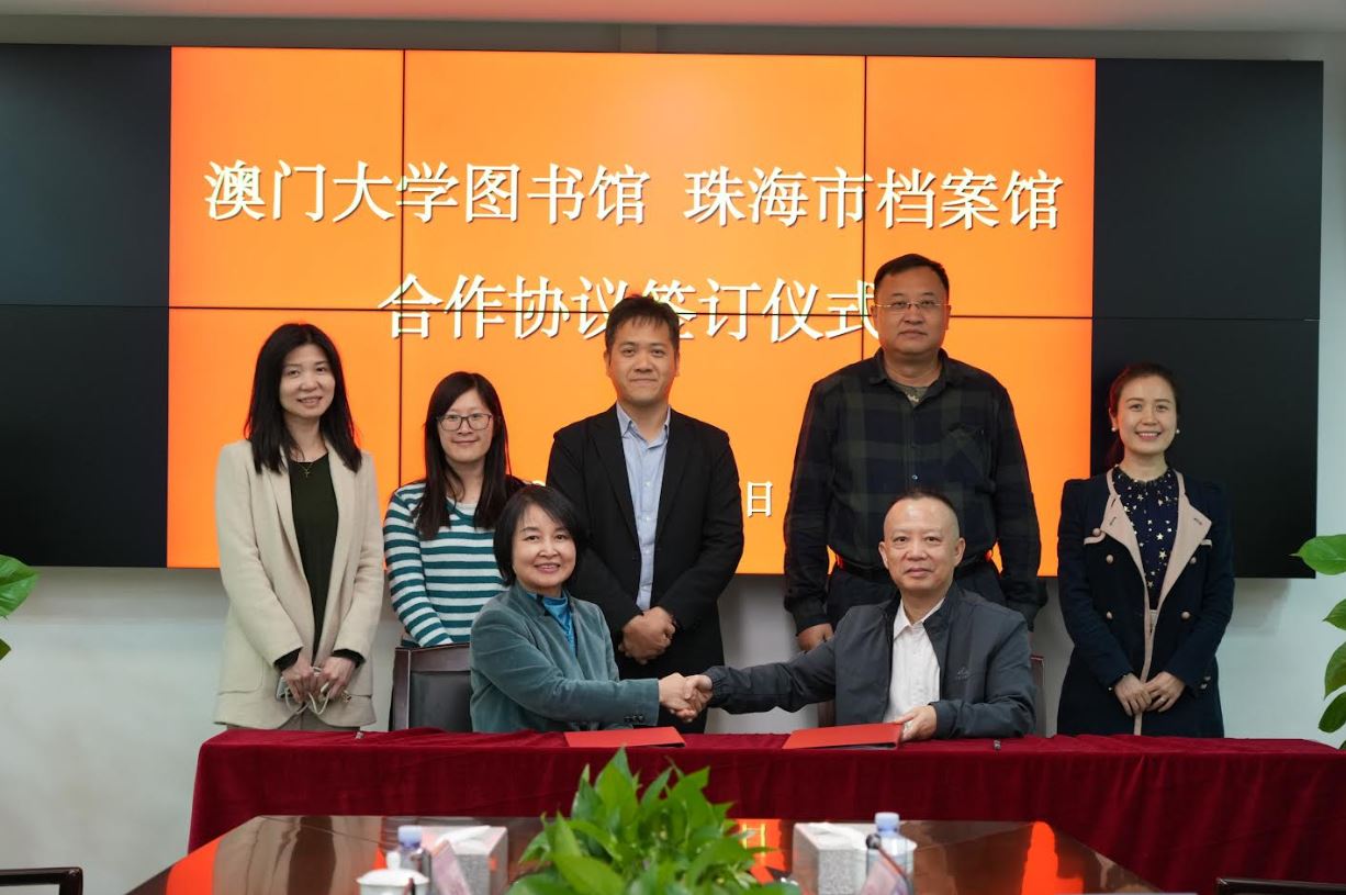 儀式上,澳門大學圖書館館長徐鴻與珠海市檔案館館長黃錚共同簽署合作協議。雙方將共建珠澳歷史文化資源分享機制,攜手講好“香山故事”和“灣區故事”,設立“珠澳歷史研究專項課題”,為珠澳融合發展提供學術支撐,加強檔案資訊化與保護技術交流,共同探索人工智慧等新技術在檔案領域的深度應用。