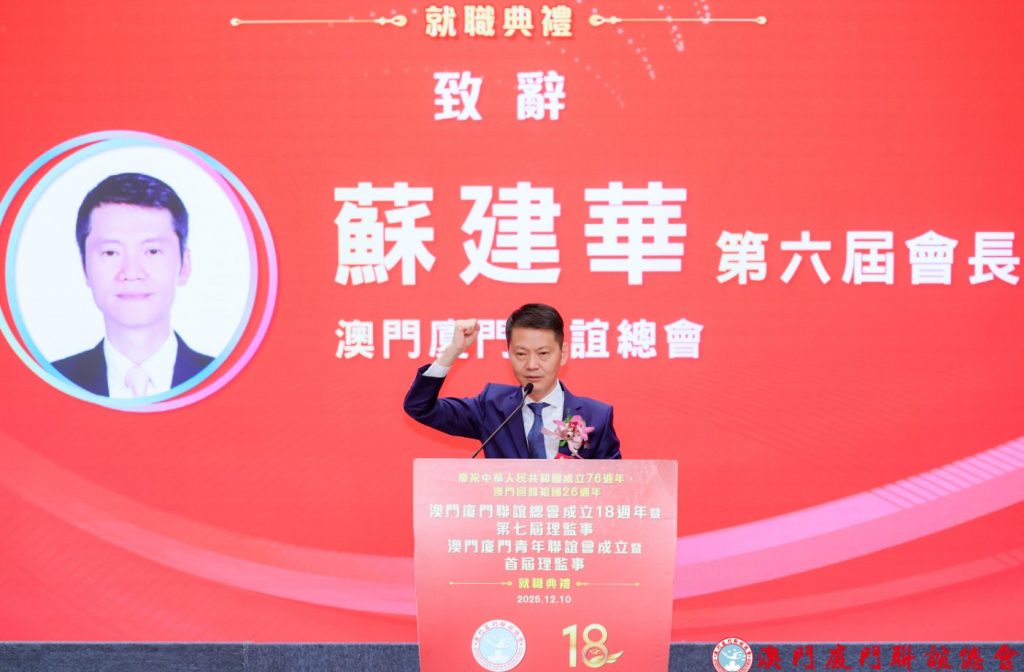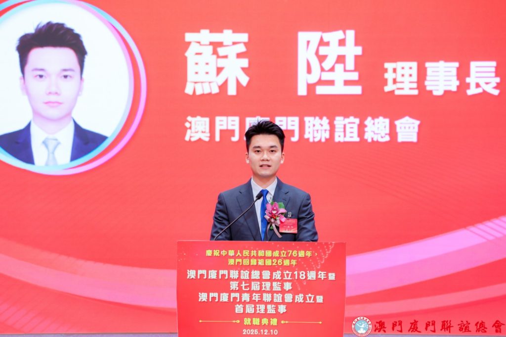 理事長蘇陞在致辭中表示,將與新一屆理事會一起,繼續傳承聯誼總會的優良傳統,全力推動會務發展,凝聚鄉親力量,深化澳廈交流合作,搭建更高層次橋樑,同時,加強愛國愛澳教育及青年培育,深化文化認同,推動薪火相傳。