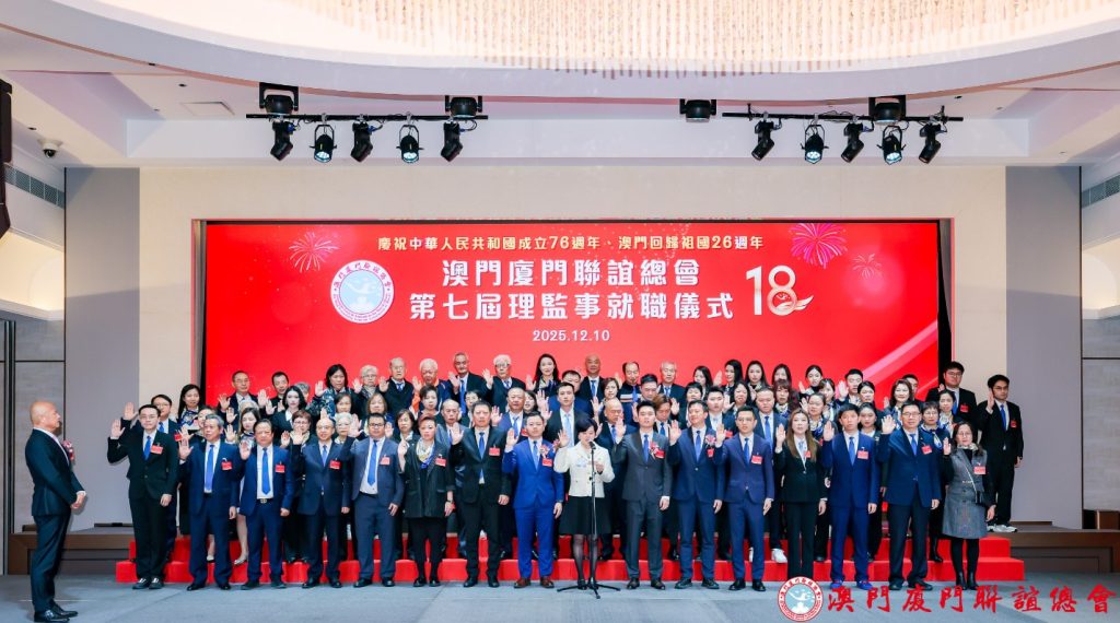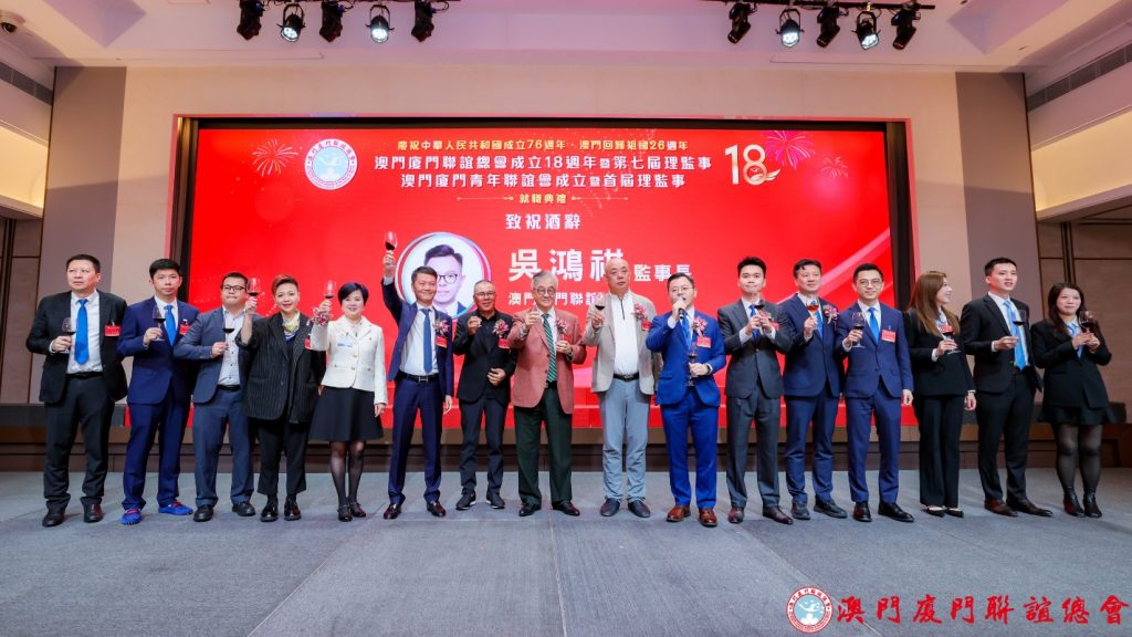 【環球新聞報訊】澳門廈門聯誼總會於12月10日晚七時假旅遊塔會展娛樂中心三樓宴會廳舉行慶祝澳門回歸祖國二十六周年,該會成立十八周年暨第七屆理監事就職及澳門廈門青年聯誼會成立暨首屆理監事就職典禮。中聯辦協調部部長仇昱、廈門市政協副主席林重陽、澳區全國人大常委高開賢以及全國政協委員、澳門福建同鄉總會會長陳明金等人主禮。會長高美燕語勉兩會理監事堅守愛國愛澳愛鄉的創會宗旨,持續凝聚鄉賢,搭建廈澳兩地交流橋樑。